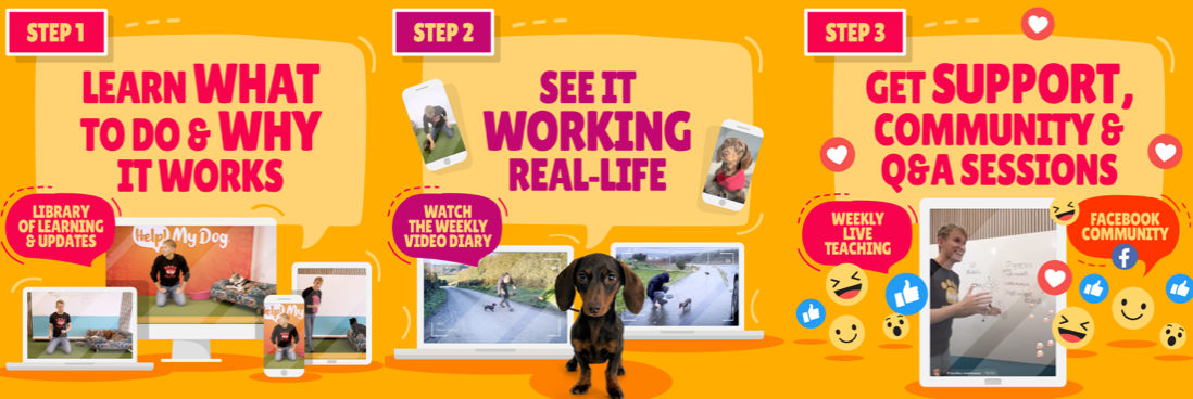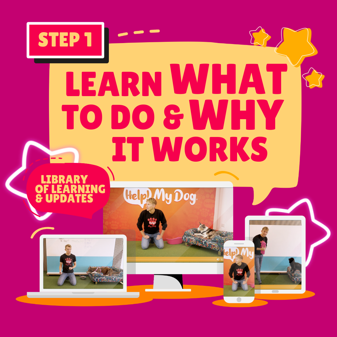 Step 1: Learn the "WHAT to do" and "WHY it works" to transform your dog's behaviour: Full Access to the Video Lesson Library.